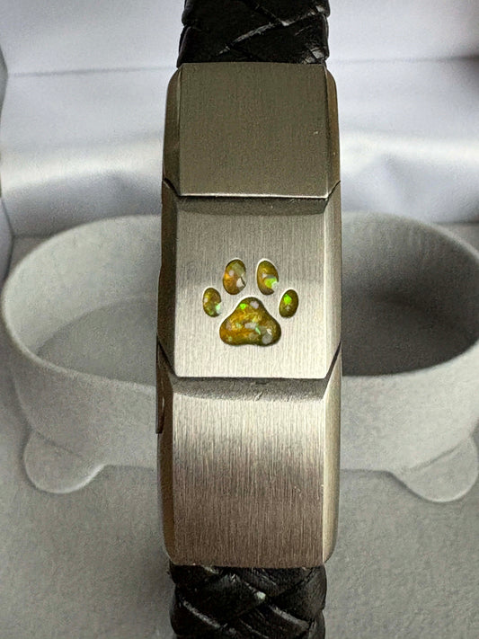 Mens Leather/Stainless Steel Dog Paw Bracelet