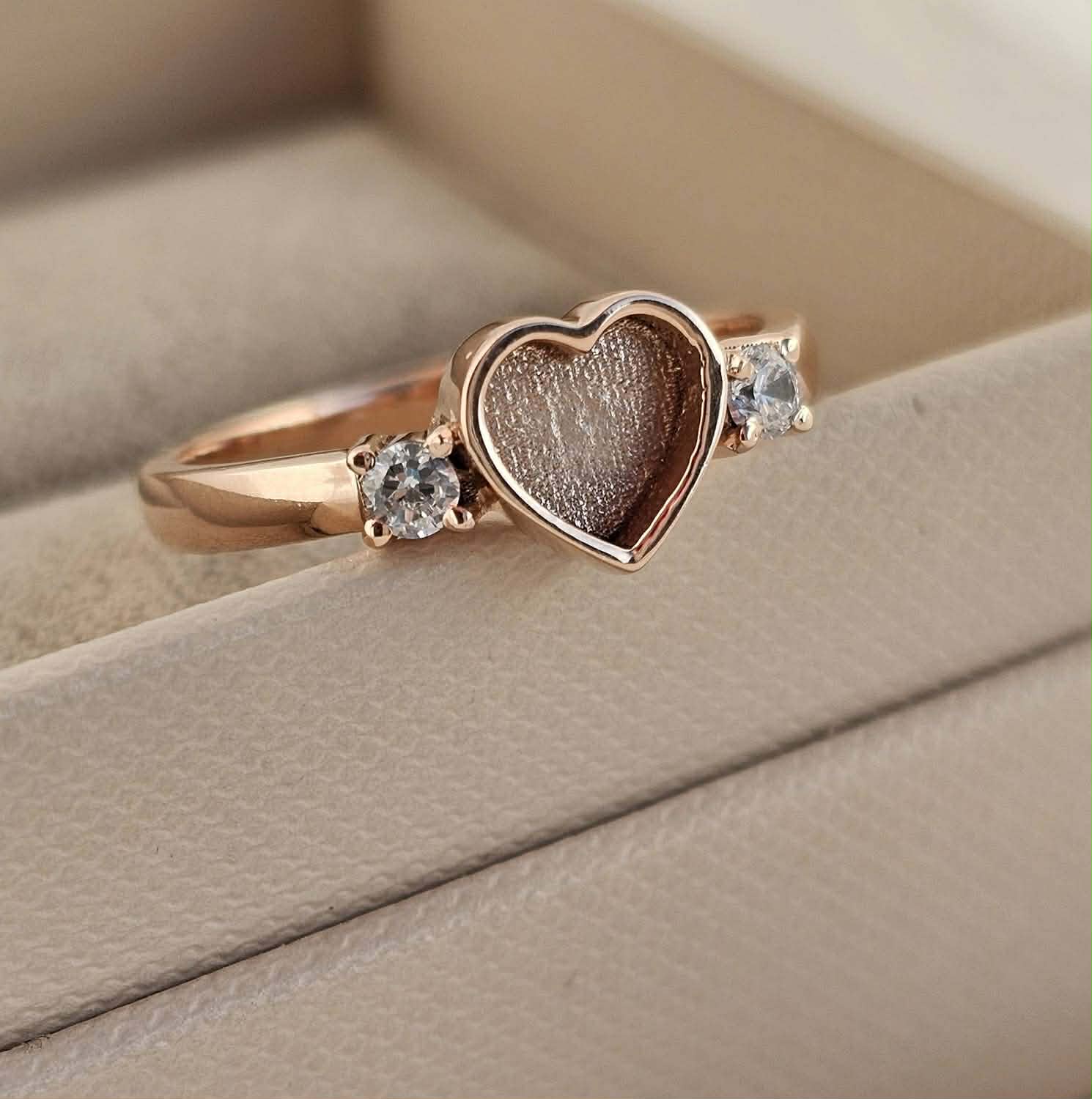 Sparkling and full of meaning, this sleek 9ct gold band features a polished heart setting with cz stones either side designed to hold your most cherished keepsake. Its simple elegance makes it perfect for everyday wear or as a subtle tribute to someone special.