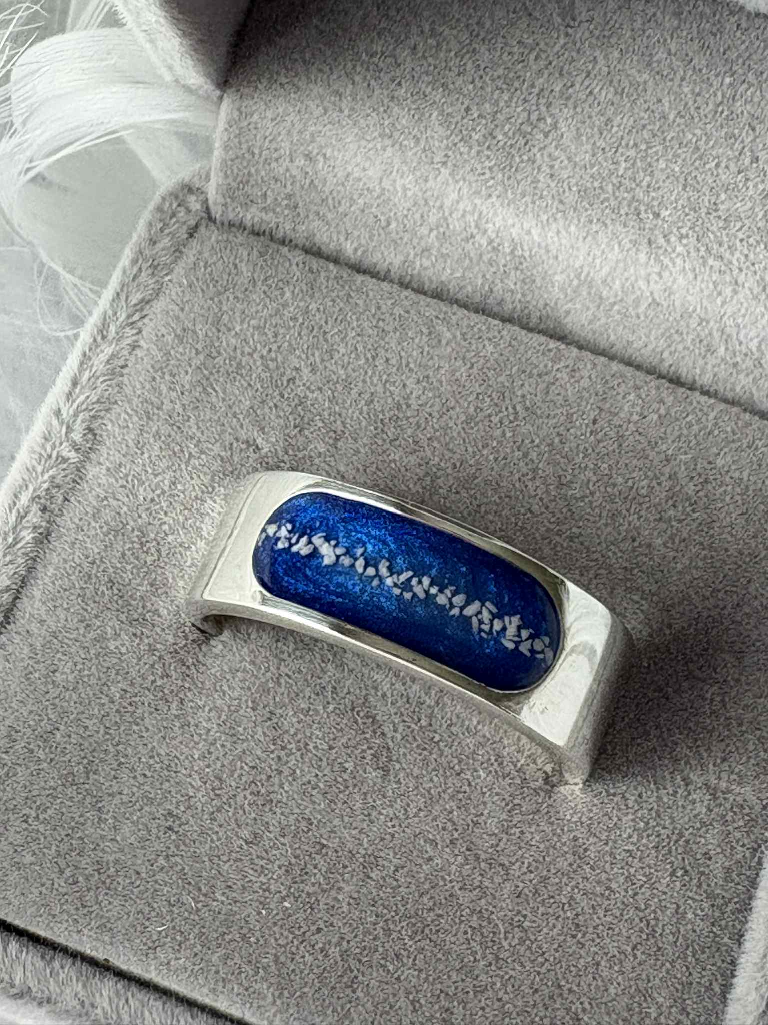 They can be added around or over your ashes, hair, or other inclusions to create a unique and meaningful finish. Each one is slightly different, making every piece one of a kind.