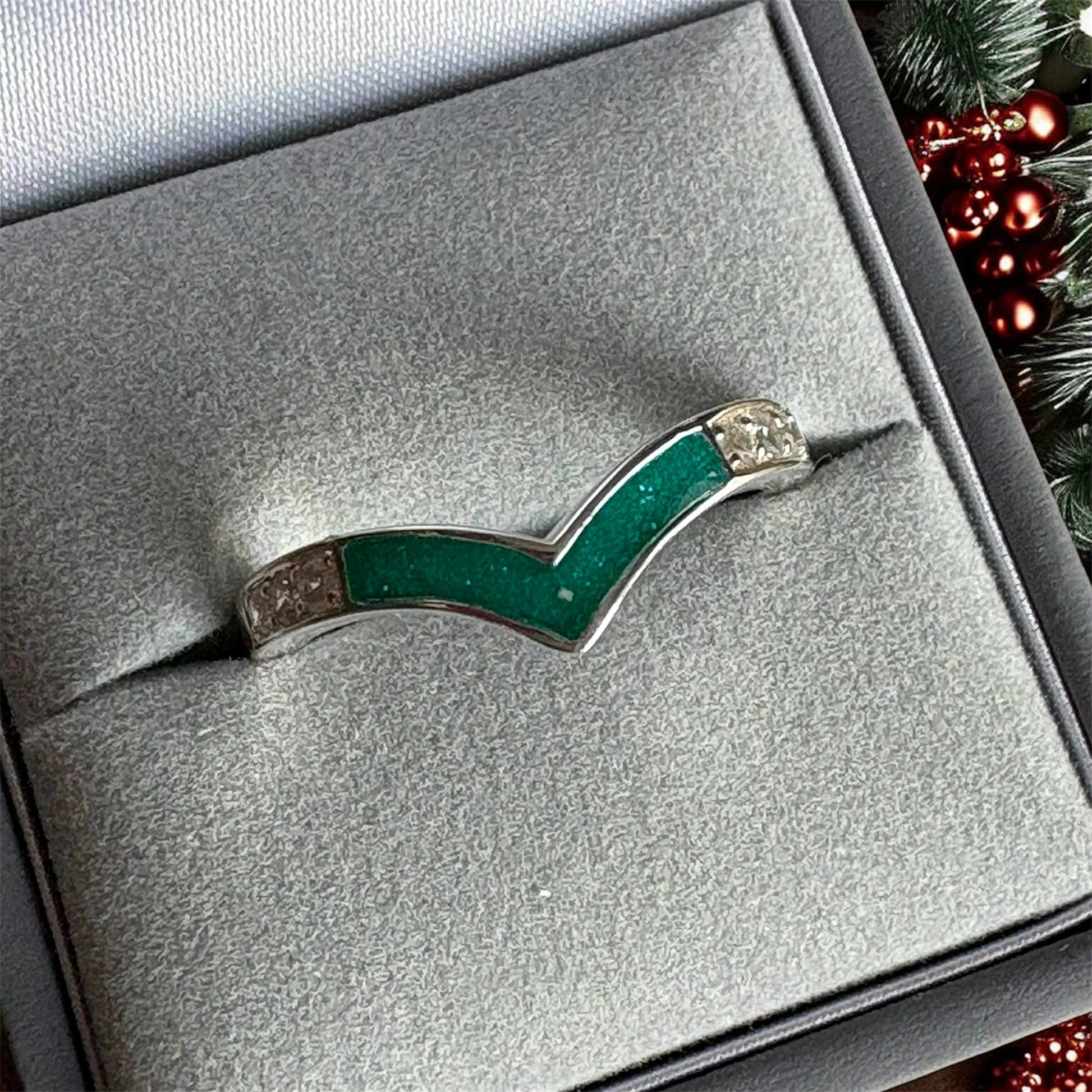 This elegant wishbone-shaped ring is a modern and meaningful way to honour a loved one. Crafted in sterling silver, it features a sleek, contemporary design that curves gently around the finger. A small inclusion of your choice can be held within the band, creating a deeply personal keepsake.