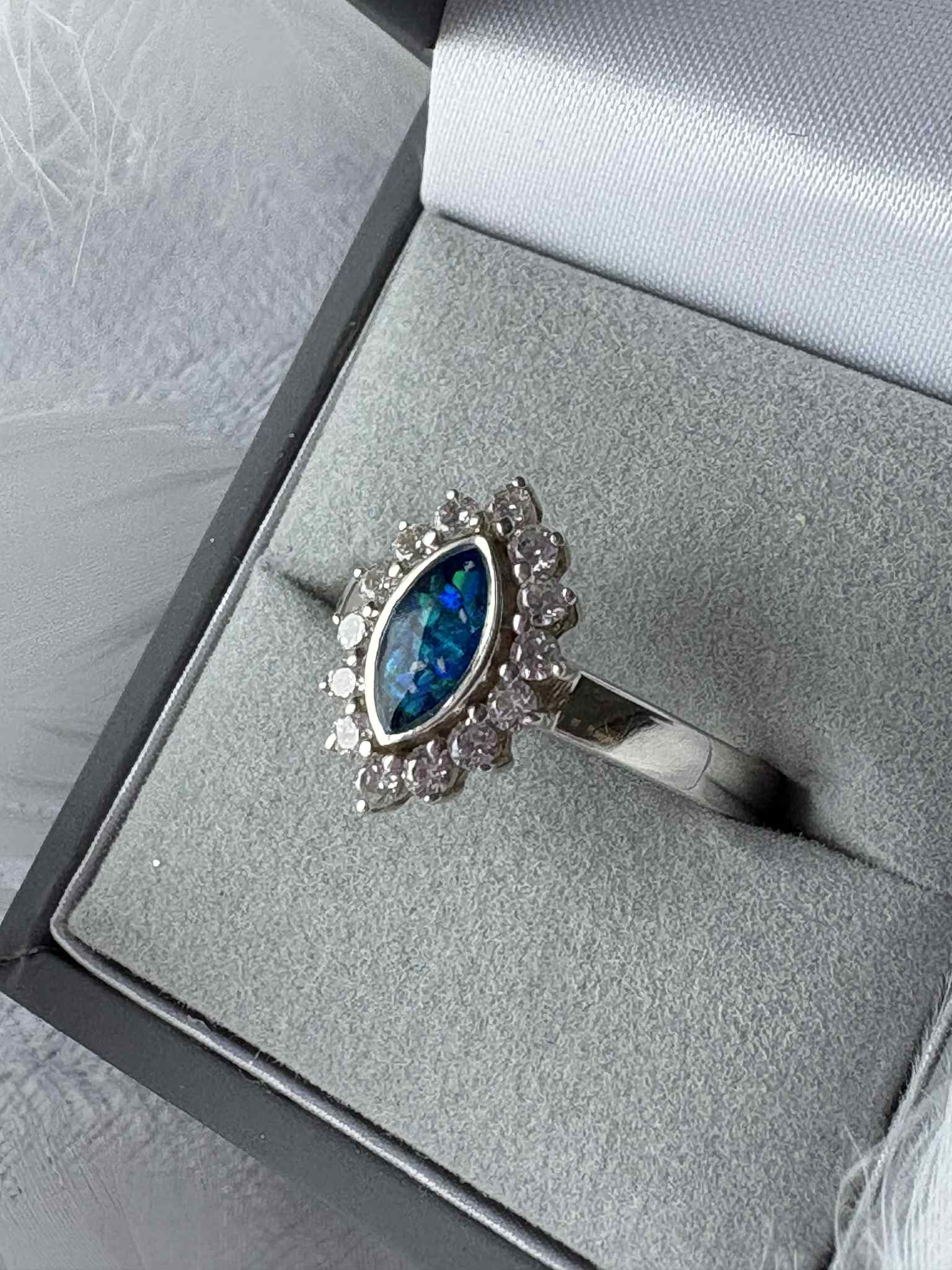 A timeless sterling silver marquise centre framed by a radiant halo of shimmering cubic zirconia stones, this regal design captures grace, beauty, and remembrance in perfect harmony. The marquise setting gently cradles a treasured inclusion, turning memories into heirlooms. Suitable for precious occasional wear.