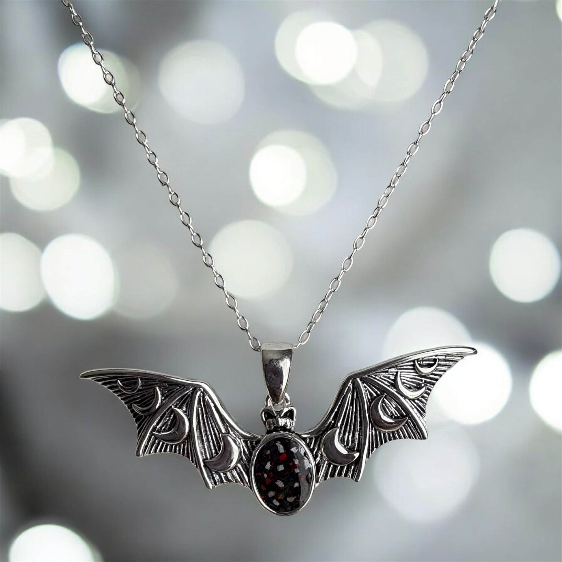 Bold, striking, and rich in symbolism, this beautifully crafted sterling silver bat pendant is perfect for those drawn to the mysterious, the meaningful, or the gothic.